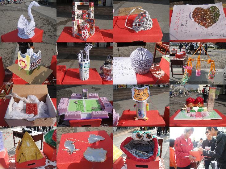 学生们不忘灾区贫困人民,为送上自己的一份爱心而纷纷行动起来。学生们以爱心、环保等为主题,开展了一次独具匠心的创意募捐活动。所谓创意募捐,就是鼓励学生们,用身边的废旧材料创作出精美的公益作品进行展示,观众们将小零钱作为选票,为自己最喜爱的作品加油。同时本次募捐也是国产色情网
