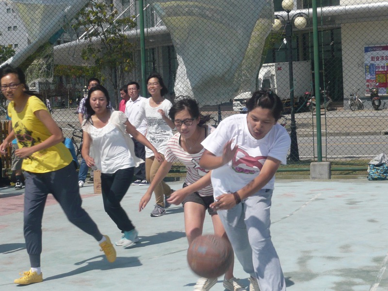 新生参加,比赛时分为两个组,在每组内采取循环积分制,胜利一场积2分,每组积分最多的队伍进入复赛,争夺冠亚军。比赛分为三节,其中第二节由女生们参加,巾帼风采赛场飘洒,增加了比赛的看点,调动了赛场的气氛。