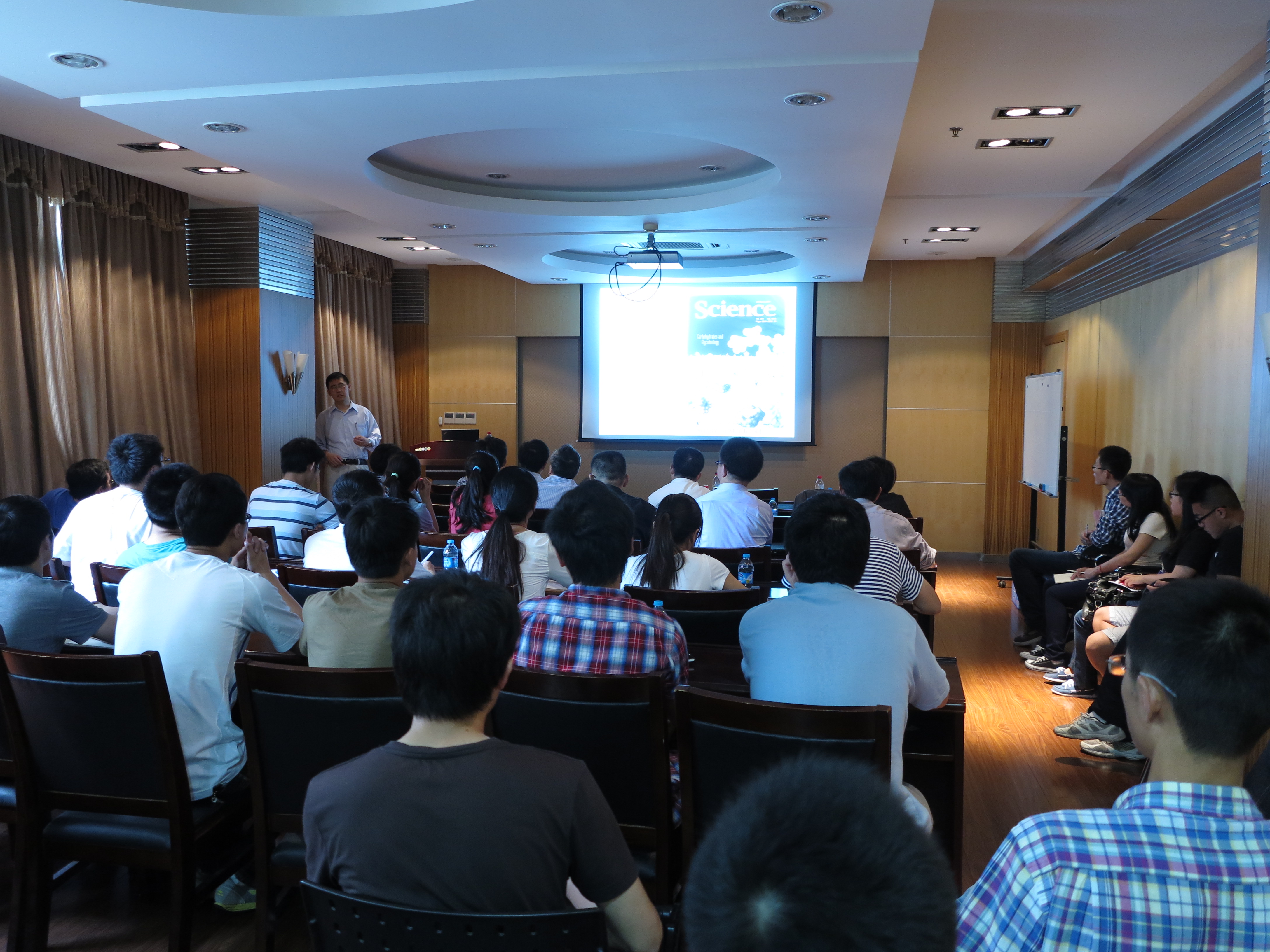 ,钱旭红校长与Binghe Wang教授就肿瘤细胞的分子识别、荧光和质谱探针进行了深入探讨和交流。随后,Binghe Wang教授以“Looking for the “Sweet Spot” and pharmacological targets for disease”为题, 就糖生物化学前沿领域,肿瘤细胞表面特征多糖标识物的分子识别及荧光和质谱探针的设计原理并应用于肿瘤诊断做了精彩和风趣的学术报告,钱校长和与会的师生纷纷提问与Binghe Wang教授进行现场互动。报告会由国产色情网
