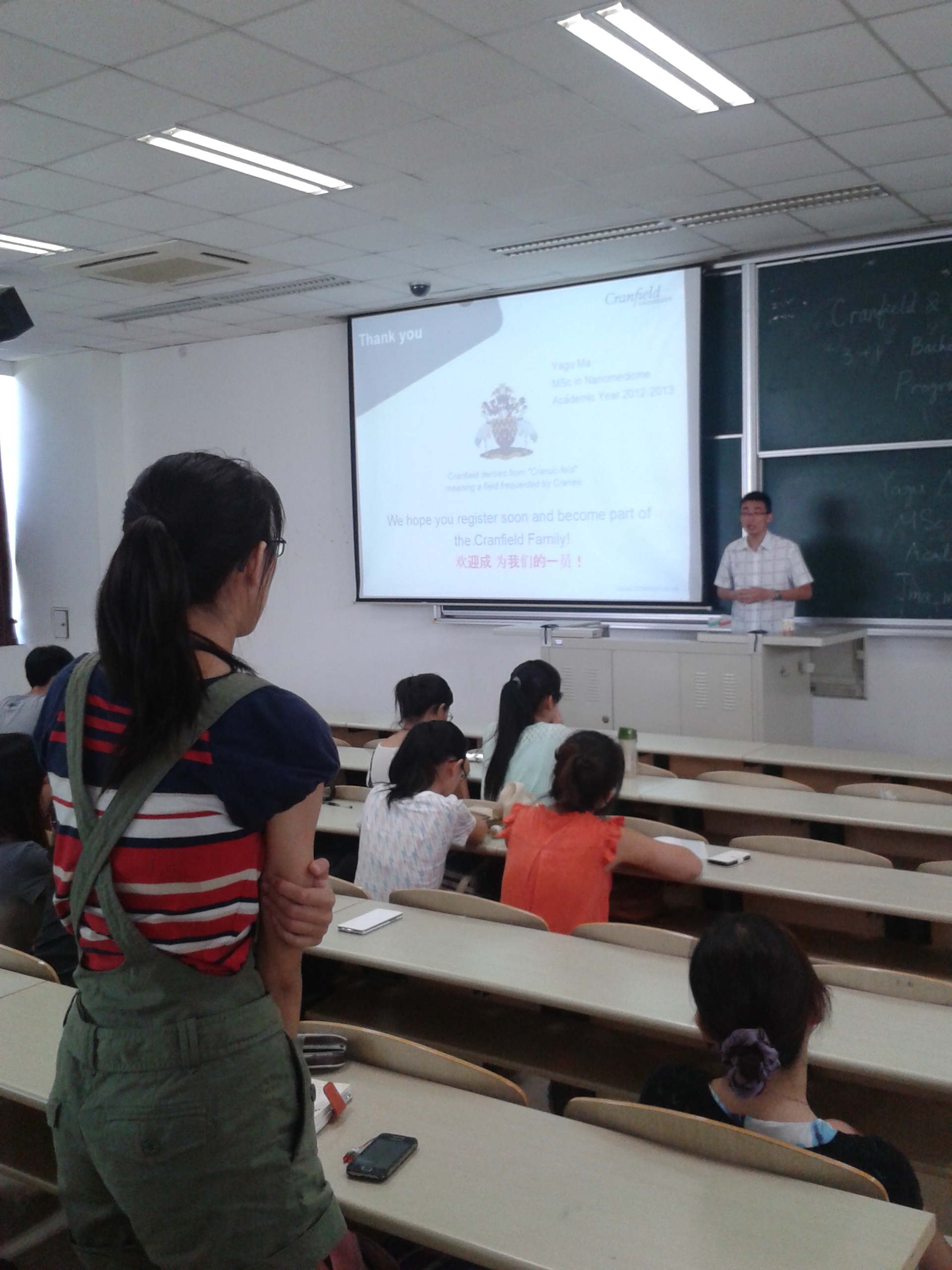马亚谷同学详细介绍了Cranfield 大学的校园环境、院系分布以及他所在的MSc in Nanomedicine Academic 各学科领域的研究进展情况,并对英国Cranfield大学国产色情网
