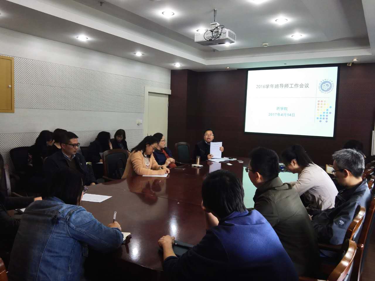 在学院会议室召开了班导师工作会议,会议由教学副院长任国宾教授主持,各年级班导师和教务员都出席了会议。