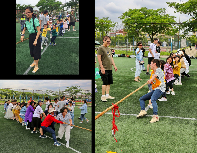 运动会现场爆发出阵阵加油声,号子声也不绝于耳,就连平日里文静、柔雅的女老师们也用力量向所有人展示了她们“强悍”的一面。