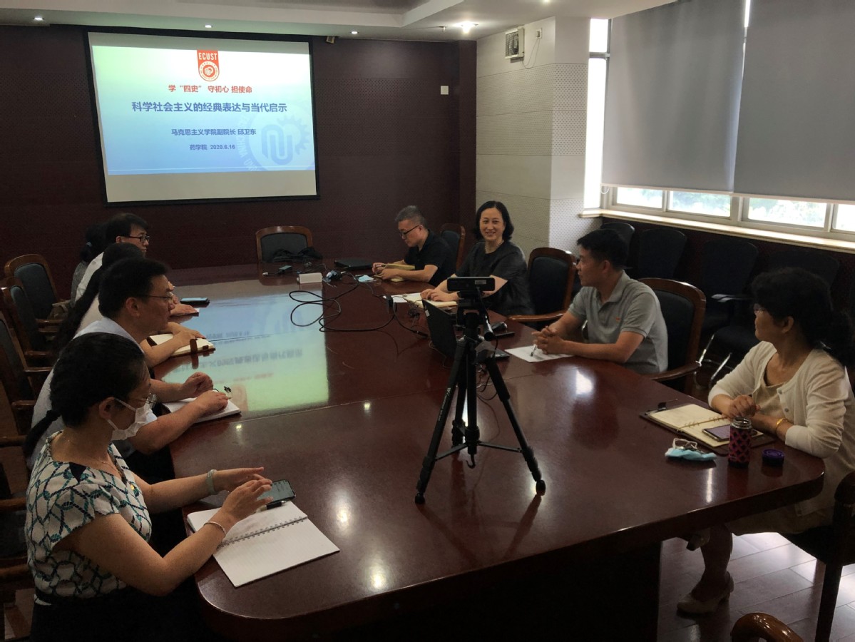 邀请马克思主义学院副院长邱卫东作了题为“科学社会主义的经典表达与当代启示”的专题报告。学院党委委员和教工党支部书记进行了现场学习,其他教职工开展了在线视频学习。报告会由学院党委书记张青主持。