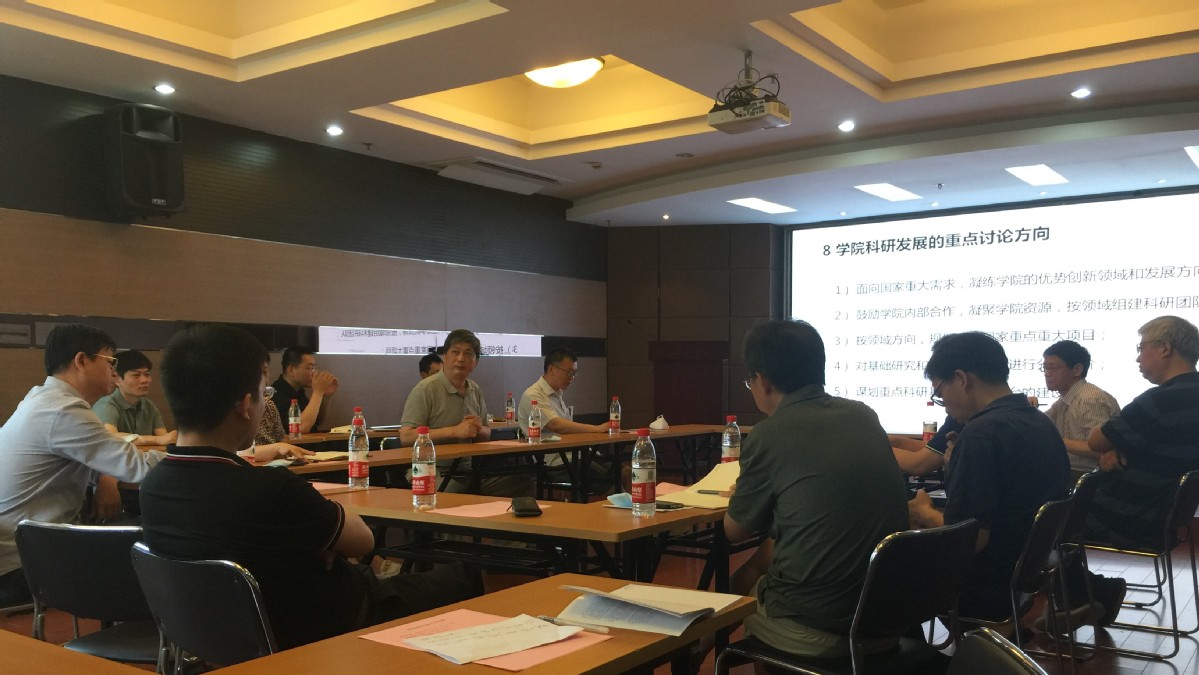 副院长李浩作了学院科研工作总结报告,充分肯定了学院在基础研究、应用基础研究和基地建设等方面取得的成绩,同时也指出了学院当前发展所面临的困难,并建议了本次讨论的重点方向。