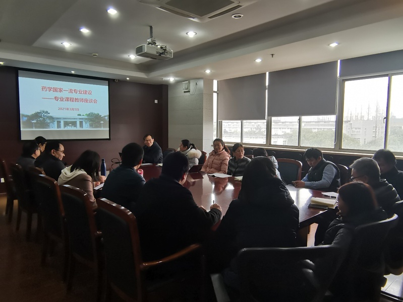 药学国家一流本科专业建设骨干教师座谈会在实验18楼420会议室召开。会议由副院长、药学专业责任教授邓卫平主持,院长助理马磊教授,系主任刘桂霞教授,以及各专业必修课程授课教师唐赟、赵玉政、高峰等16位教授出席。