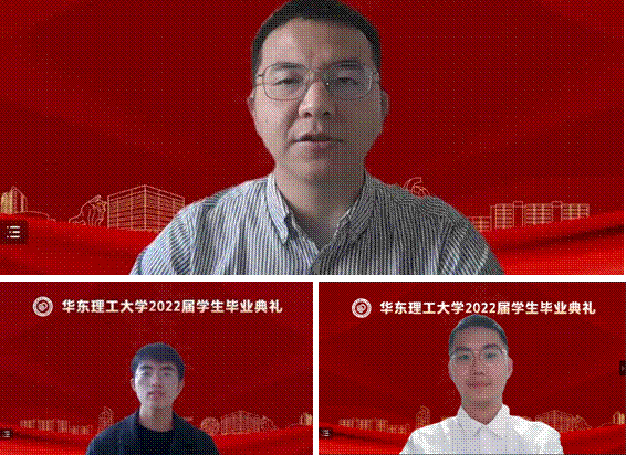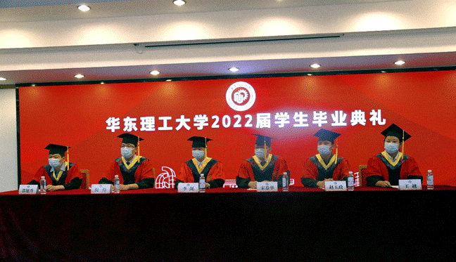 党委书记倪炜、院长宋恭华、党委副书记王越、副院长赵玉政、副院长邵旭升在逸夫楼演讲厅现场出席;药物科学系和制药工程系主任、学位委员会委员、班导师、研究生导师代表及2022届全体毕业生于线上参加,毕业典礼由王越主持。