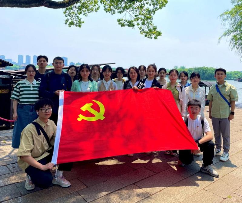 奉贤本科生党支部组织前往嘉兴南湖开展参观学习活动。党支部书记秦诚、教工党员邵桐以及学生预备党员、发展对象、入党积极分子参加活动。访红船学党史,重实践悟精神。