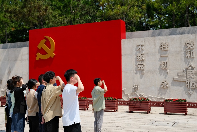 随后,全体学生预备党员来到纪念馆北广场的宣誓墙前,面对党旗,高举右拳,在秦诚的带领下,在随行人员的共同见证下完成了庄严的入党宣誓仪式,声音洪亮,意志坚定。