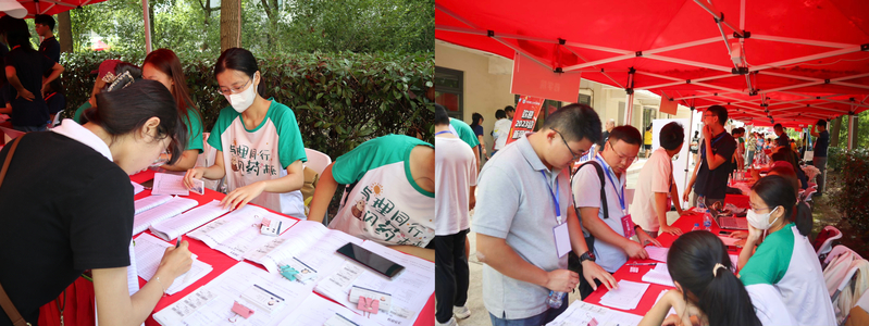 友爱互助的良好风貌。在报到点,新生跟“药药”合照打卡,留下在华理的第一张照片。