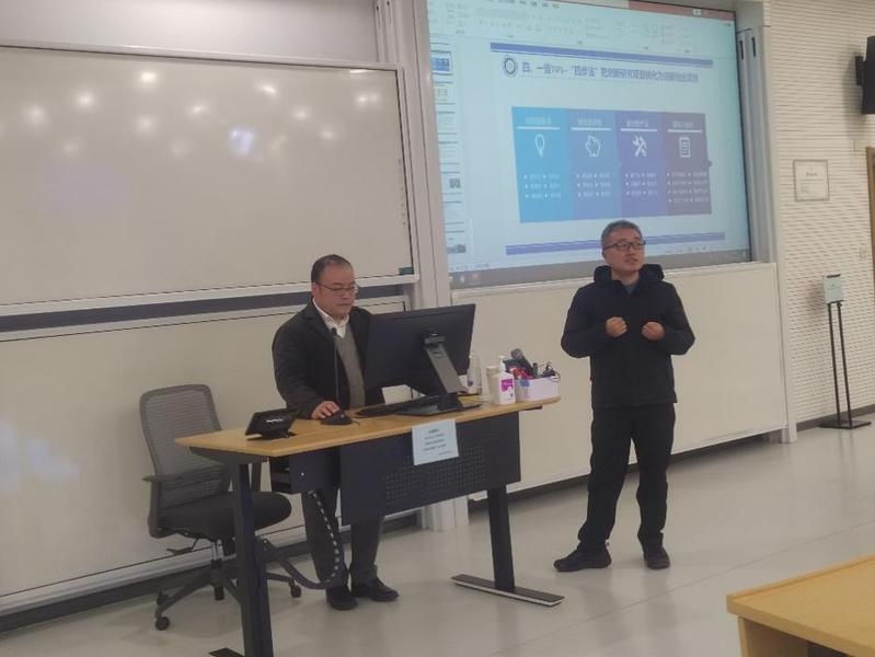 创新创业教育中心副主任司忠业作“落实“教育、科技、人才”三位一体,助推人才培养和成果转化“的教职工理论学习专题报告会。全体教职工进行了现场学习,报告会由学院副院长马磊主持。