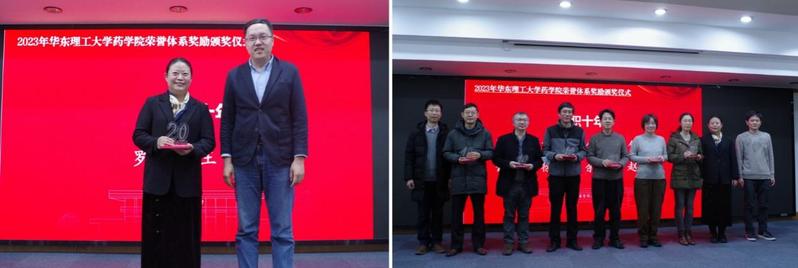 倪炜、王越、邵旭升和张敏为入职华理30年、20年和10年的教师颁发了纪念牌,感谢他们长期以来为学校和学院发展做出的积极贡献。