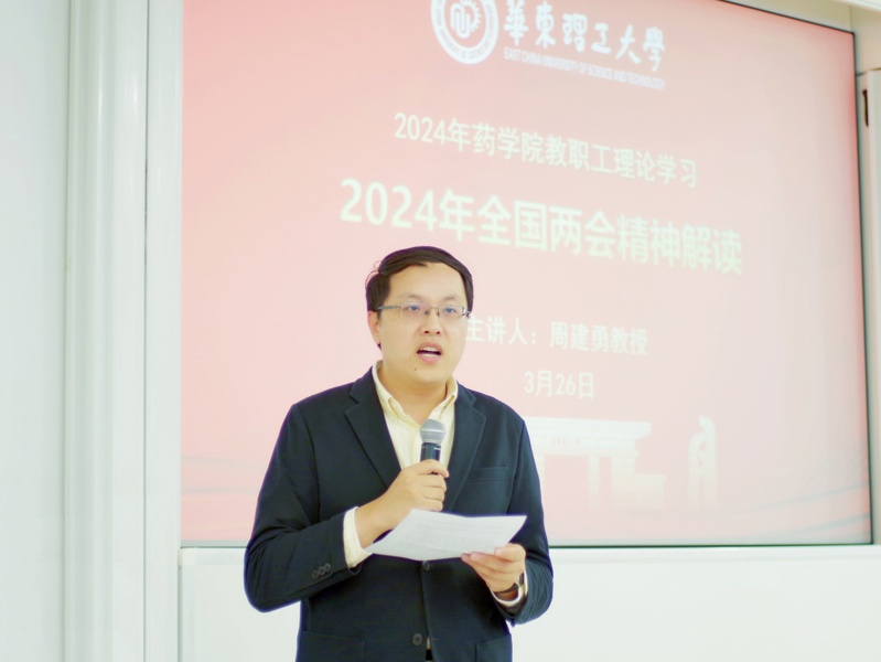 倪炜指出,要把学习贯彻习近平总书记重要讲话和全国两会精神,同深入学习贯彻习近平总书记考察上海重要讲话精神紧密结合起来,认真抓好贯彻落实。当前,推动高质量发展已经成为全党全社会的共识和自觉行动,全院教师要深刻领会习近平总书记关于“新质生产力”的重要论述,充分认识到发展新质生产力是推动高质量发展的内在要求和重要着力点,科技创新是发展新质生产力的核心要素。学院要以国家重大战略需求为导向,以“双一流”建设为引领,建好药学和制药工程两个国家一流专业,加强药学拔尖创新人才自主培养,增强科技创新策源能力,深化政产学研协同创新,推动创新链、产业链、资金链、人才链“四链”融合,以新质生产力推进学院和学科高质量发展。