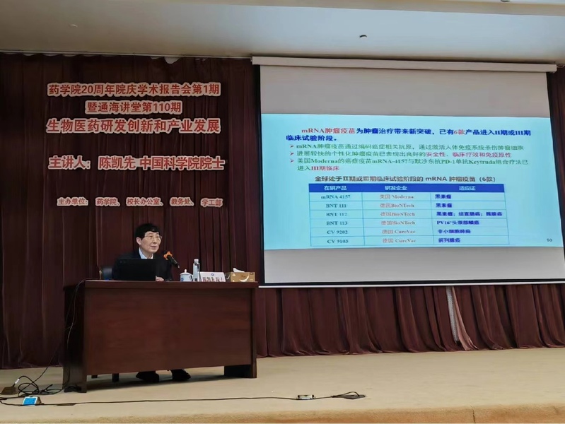 陈凯先院士用大量国内外新药研发数据,展示了近年来我国创新药研发领域的飞速发展情况。他结合基于生物大数据、生成式AI、自动化技术等多学科交叉领域的新药创制案例分享,为学生们介绍了当前的研发热点和未来发展趋势。他强调,生物医药科技创新是国家发展的重要支撑,也是提高人民健康水平的关键所在。他鼓励学生们要关注生物医药科技创新前沿,面向国家重大需求,勇于创新,不断探索新的药物研发方法和技术,壮大新药创制的“中国力量”。