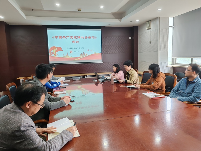 药物科学系教工党支部邀请马克思主义学院党委副书记、纪委书记卢杨作《加强纪律建设是全面从严治党的治本之策》的专题学习报告会,以党纪学习教育为契机,推动支部全体党员学纪明纪,增强纪律意识,严于律己,守住纪律底线。报告会由支部书记黄瑾主持。