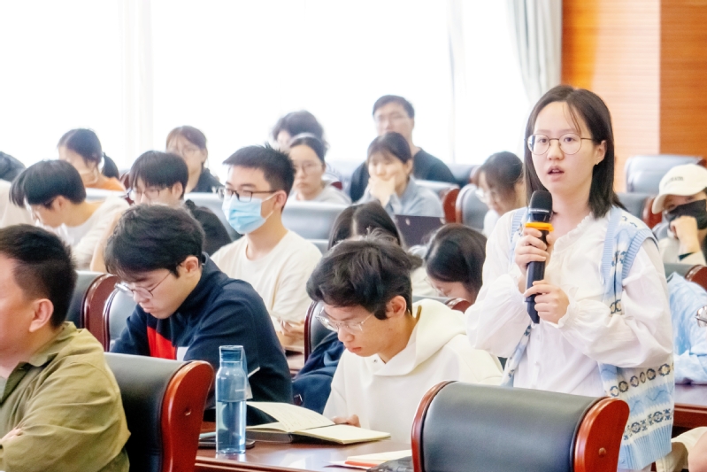 交流环节中,盛春泉耐心回答了师生关于“PROTAC设计中分子胶机制的安全性”“靶向蛋白降解技术系统与肝纤维化微环境纳米胶系统如何协同设计”“蛋白质自噬降解相比于泛素化降解的优缺点”等问题,并提供了宝贵的建议。