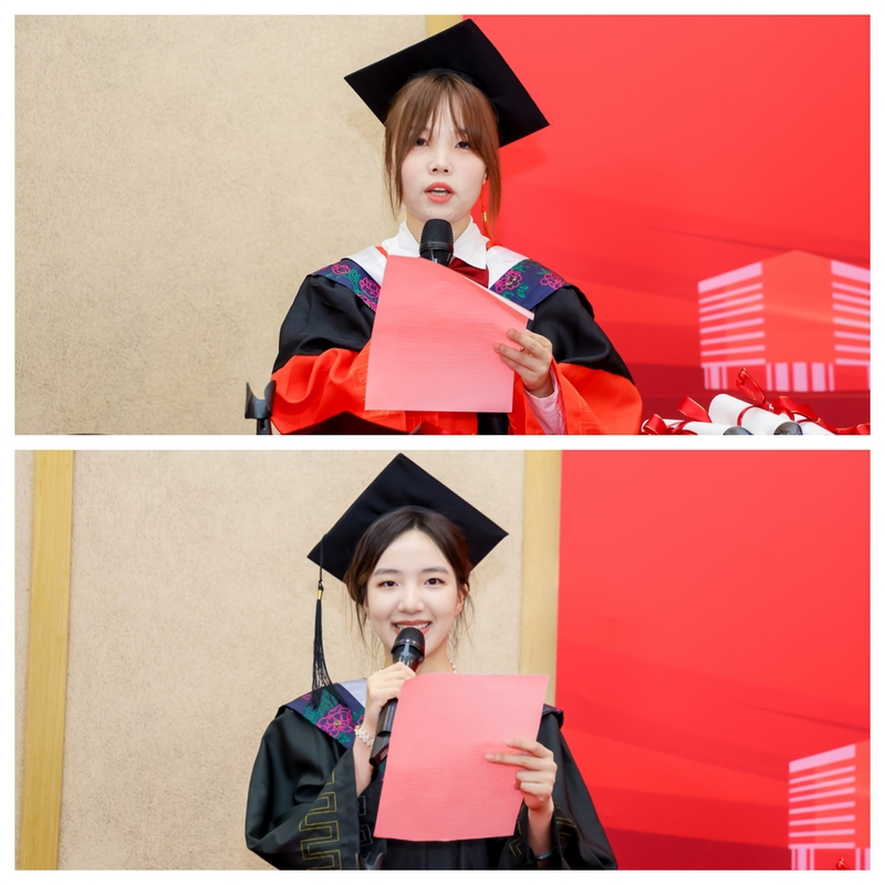 2024届博士研究生汪祎梦、本科生潘诗祺作为毕业生代表发言。汪祎梦同学分享了自己科研探索中的点点滴滴,表达了对母校深深的眷恋与感激之情。未来将继续秉承国产色情网 的优良传统,不忘初心,继续前行,为我国医药事业的发展贡献自己的力量。潘诗祺同学感谢学院提供的优质教育资源和师长们的辛勤栽培,将带着学院的期望和祝福,勇敢踏上新的征程,祝愿母校繁荣昌盛、蓬勃发展。