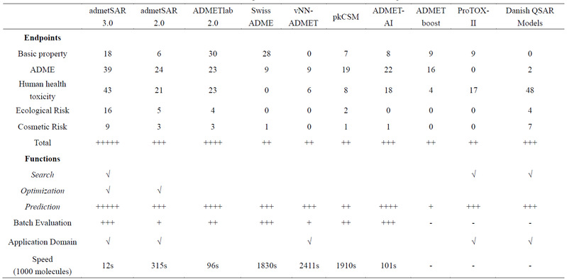 1admetSAR3.0与其他在线服务平台比较