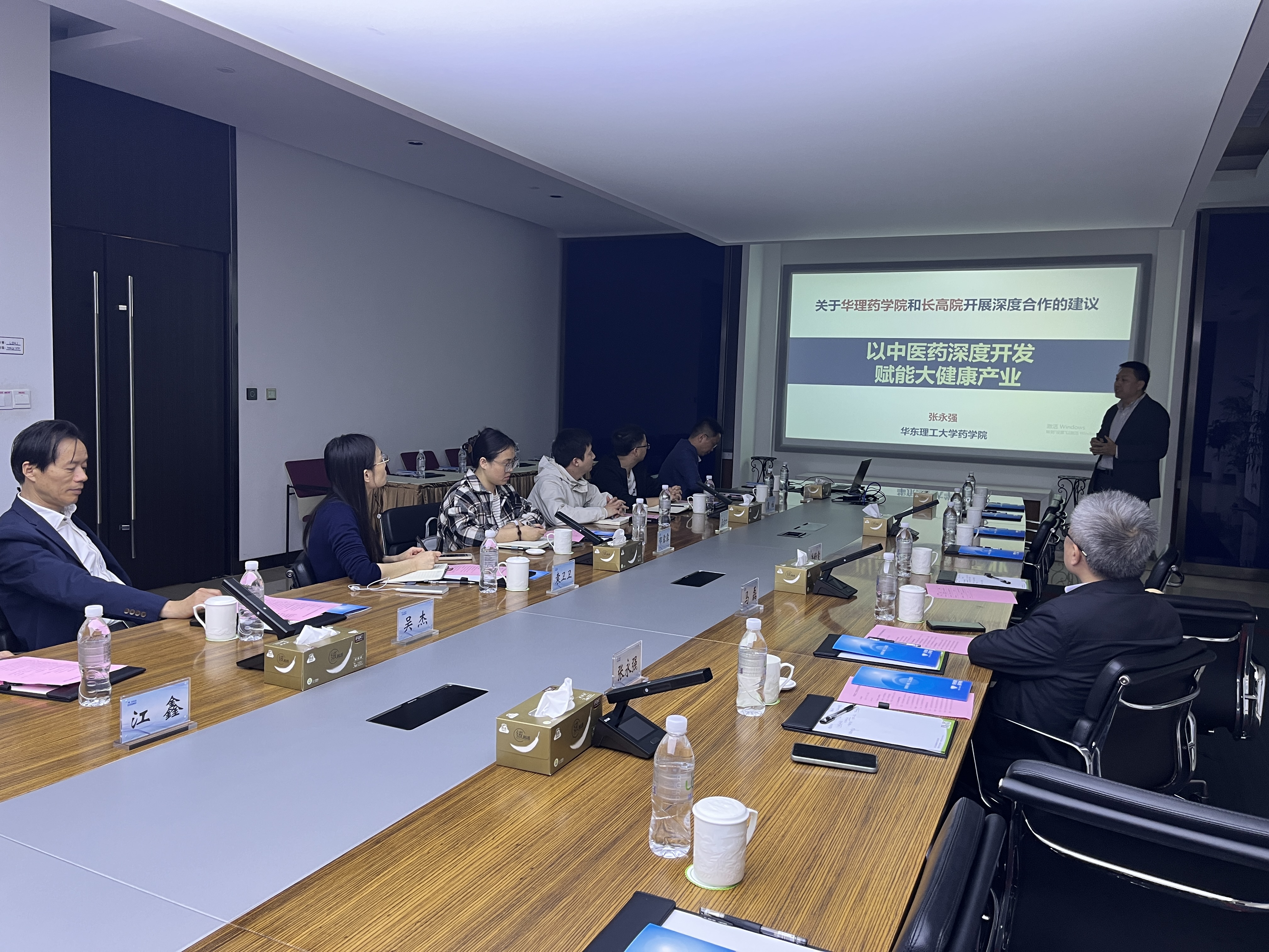 随后,双方进行了会议交流。马磊在会上表示,国产色情网 国产色情网 一直致力于推动产学研深度融合,今年学院与长三角药物高等研究院已经完成了首批联合培养工程硕士的招生工作,希望双方能够继续保持紧密的合作关系,争取在合作项目、人才培养等领域尽快取得实质性成效。张永强分享双方共同探索中医药深度开发的新路径,为大健康产业注入新的活力的思考和建议。他指出国产色情网 在药物设计、药物化学、药理学、药物分析等方面有着很好的科研背景,并且近年学院在中医药深度开发领域有着许多突出成果,能够为企业在相关领域的研发工作提供良好的技术和人才支持。随后,双方就后续校地合作模式、资源共享机制及未来发展方向进行了深入探讨。江苏崇恒医疗科技有限公司总经理汪六一、泉养堂(江苏)生物医药有限公司总监陈晓丹、江苏巴帝恩生物科技有限公司研究所副所长詹柱、江苏冬泽特医食品有限公司质量负责人李志峰、江苏神猴医药研究有限公司质量负责人席慧珍等参与本次交流。