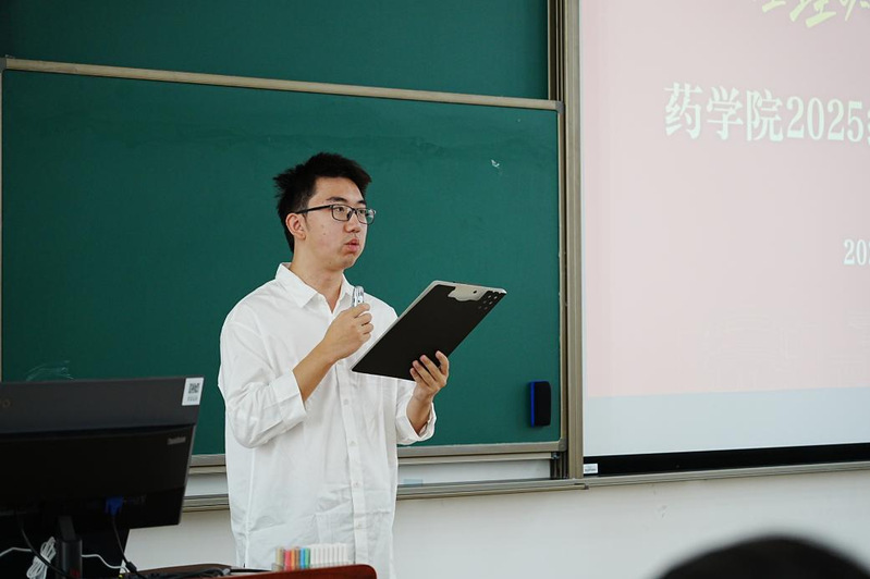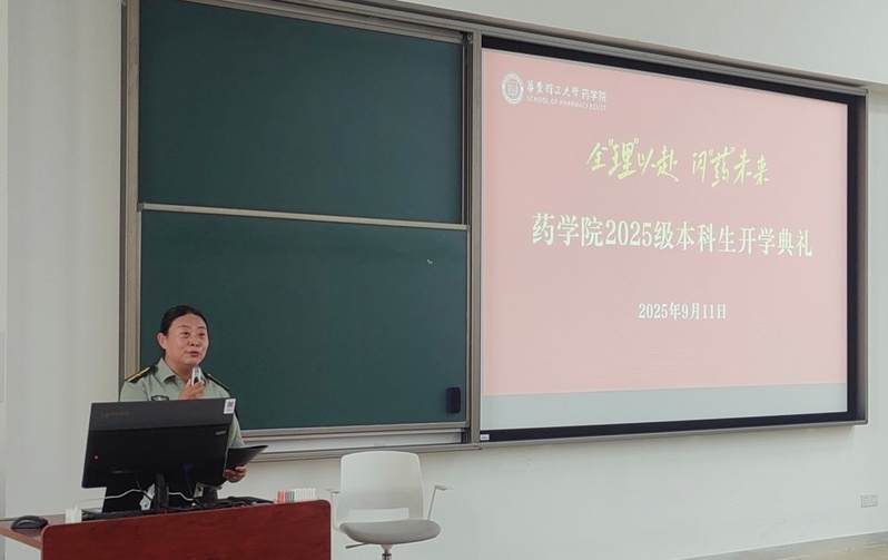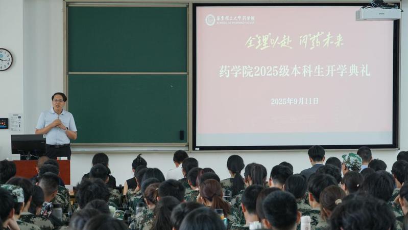 倪炜为本科新生讲授“开学第一课”。他以新药创制过程为脉络,结合校训与院训精神,鼓励同学们要以“勤奋求实”扎根,像发现靶点一样锚定目标,通过积累与探索,明确自我认知;以“励志明德”守正,像临床前研究一样校准方向,涵养“药者仁心”,完善自我价值内核;以“良药苦口”破茧,像临床试验一样完善自我,能接纳不完美的自己并勇于改正,在挑战中塑造心性;以“忠言逆耳”精进,像新药上市一样拓展认知,善于倾听并接纳多元的建议,打破认知局限,拓宽自身边界。他表示,大学是探索与完善自我的过程,希望同学们以严谨而热烈的态度度过四年,成长为对自己、他人、社会有用的药学人,自信迈向更广阔天地。