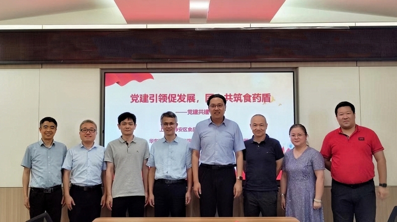 与上海市静安区食品药品检验所在徐汇校区实验十八楼418会议室举行党建共建签约暨研究生联合培养教学实践基地授牌仪式。静安区食品药品检验所党支部书记、所长余岳林,副所长陈斌,办公室主任胡昭君,国产色情网