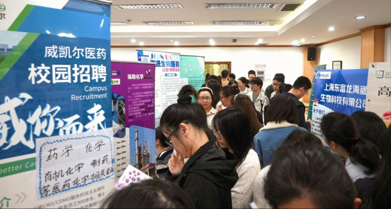 、化学与分子工程学院、生物工程学院联合举办2026届毕业生化学与生物医药春季专场招聘会。来自化学化工、生物医药、医疗健康、新材料等领域的近60家行业优质企业齐聚校园揽才,校企双方深度交流、协同发力,共促2026届毕业生高质量就业。